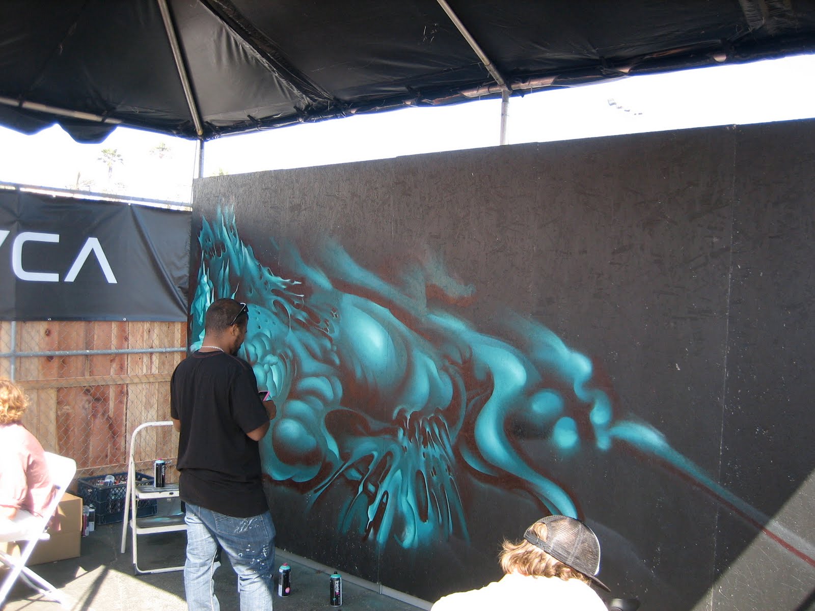 Our younger bro was in town and we decided to take him to the 2 day Ballyhoo beach party in Santa Monica. It was right on the beach next to the pier and hundreds of people showed up. Featured unique brand activities, action sports exhibitions, and some of the most buzzed about bands in the music scene. We attended on Saturday when they had the Tony Hawk Skate Jam, BMX athletes from Fox including Chase Hawk, Scott Crabmer, and Trey Jones in the beachside street session. The bands that played were Awolnation, Bad Rabbits, As Tall As Lions, Yelawolf, Ra Ra Riot, Circa Survive, and many special guests. Bad Rabbits and Yelawolf were the acts that stood out the most. First time seeing and hearing Bad Rabbits and got to say they destroyed it. It was dope seeing Yelawolf perform as well since we got the Trunk Muzik mixtape. That dude is a great example of artist branding. He also killed it. Dj Skee was the DJ. Graffiti artist EWOK also was there doing some live painting. Below are a couple pics we took. Check them out!